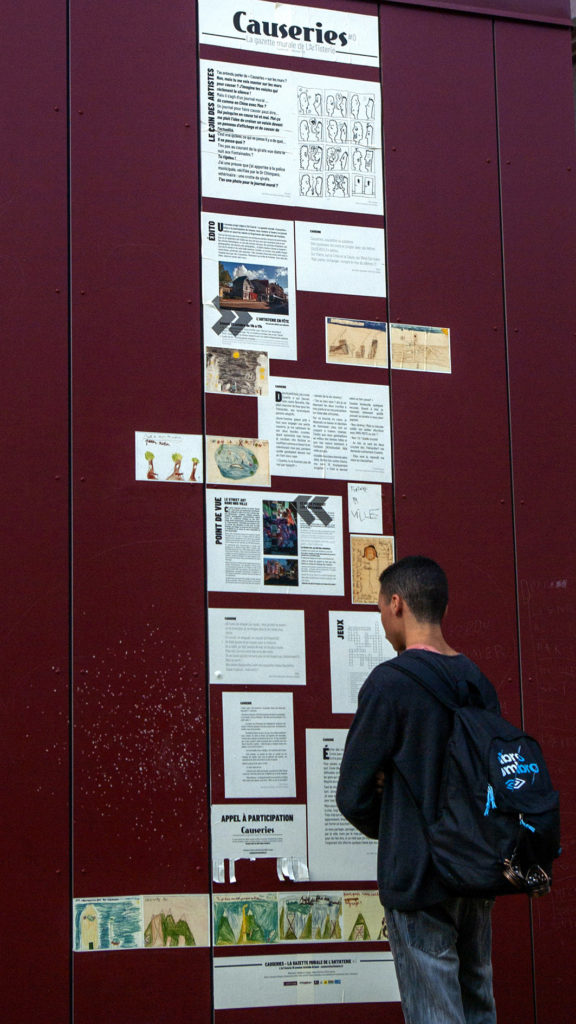 Le Samedi 26 Octobre nous avons célébré « L’Artisterie en fête » autour d’une journée aux couleurs de la maison avec le matin « Feel Fox » un spectacle jeune public, à midi un repas partagé avec le Collectif d’habitants Centre Ancien, puis un thé à la menthe en écoutant le duo Samaî. Pour l’occasion le numéro 0 de Causerie, s’est affiché sur les murs de L’ArTisterie et La journée s’est terminée avec le showcase du slameur Gyslain.N.